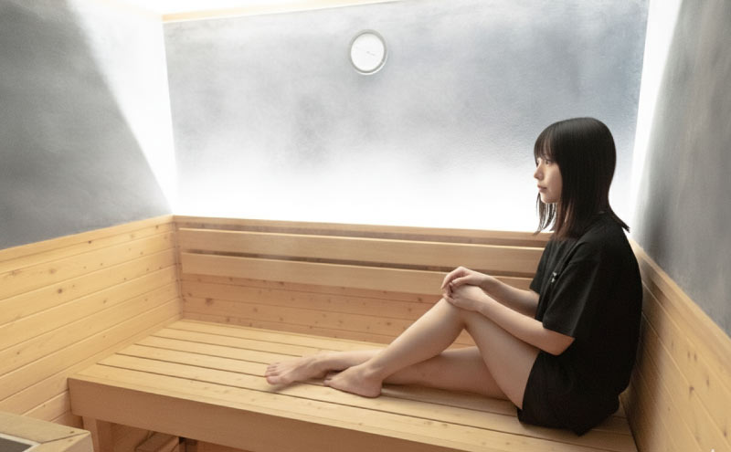 個室のサウナでは、サウナによるリラックス効果だけでなく、静寂な空間ならではの瞑想感、マインドフルネス効果も得られて、深いリラックス状態を味わえます。